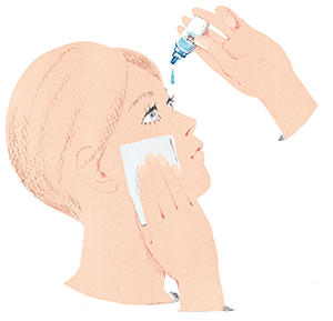 (注:防腐剤を含まないコンタクトレンズ対応の点眼薬であれば、レンズを装着したまま使える) - □化粧をしていると、点眼薬によってアイメイクが崩れやすい